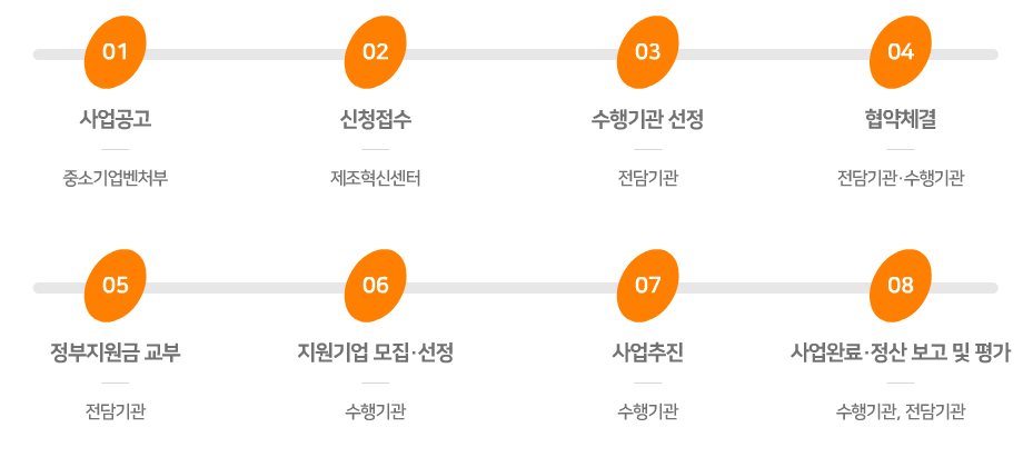 • 수행기관 모집·선정,사업관리 및 운영,구축지원,사업완료 점검,예산 집행 등의 업무수행