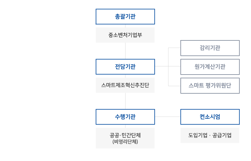 • 사업운영,정부 지원금 위탁운영 중소․중견기업 선정,전문인력 지원,추진점검,사업비 집행 관리,구축관리 등의 업무수행