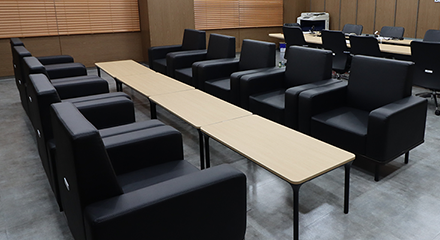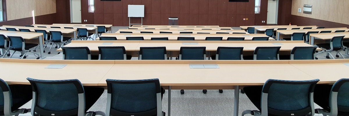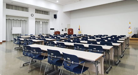연수실은 106㎡, 42석 규모로 사업설명회, 회의, 강연, 교육 등의 용도에 알맞은 회의실 입니다.